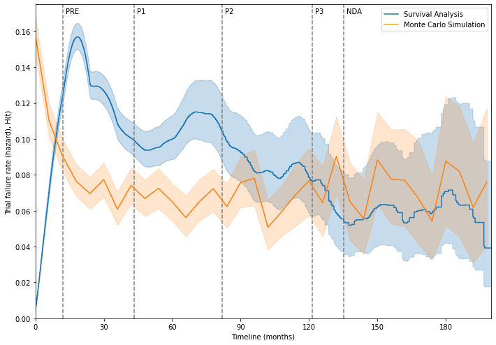 Figure 1. Estimated R&D failure rate (Survival Analysis vs. Monte Carlo simulation)